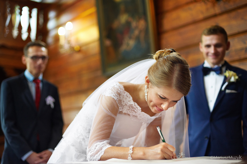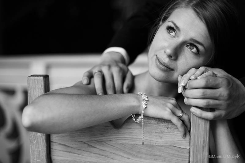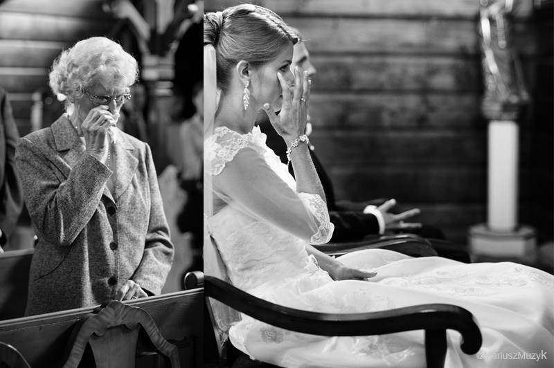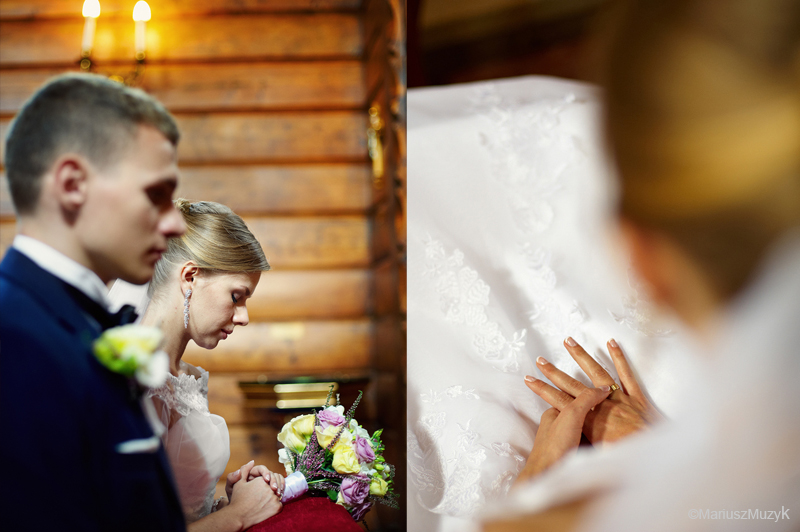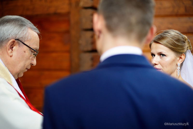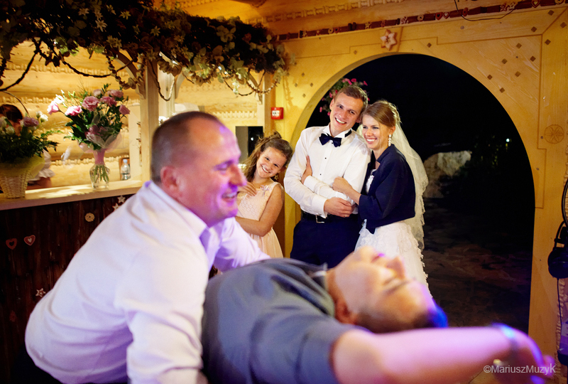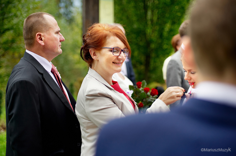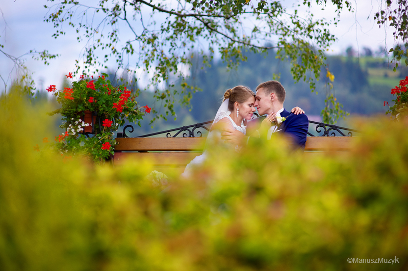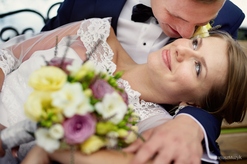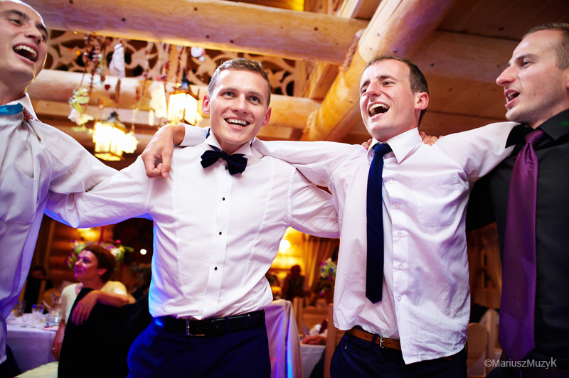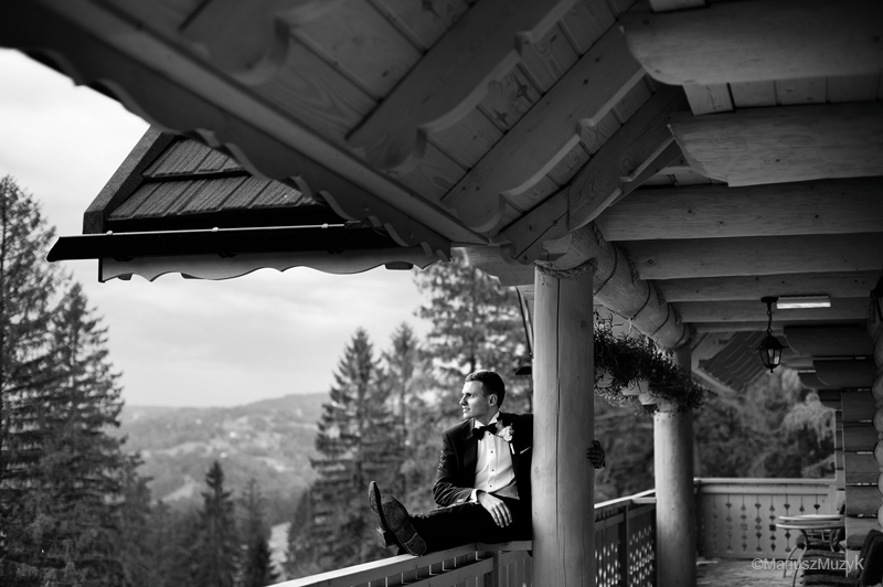 Dziś króciutki reportaż z Piernikowej Chatki w Wiśle. Ślub odbył się w kaplicy św. Jadwigi na zameczku prezydenckim w Wisła Czarne. Co prawda odprawa przed wejściem na teren rezydencji prezydenckiej wyglądała jak ta na lotnisku aczkolwiek warto było przejść wszystkie skanery, bramki etc. Kapliczka jest bardzo mała przez co to zapewnia kameralny klimat całej ceremonii. Celebrans również spisał się na piątkę – piszę o tym, bo niestety nie zawsze po ślubie pozostają w tej kwestii pozytywne emocje. Dodatkową „atrakcją” ceremonii ślubnej był mały czarny kotek, który od wejścia, poprzez przysięgę ślubną aż do wyjścia pary Młodej dzielnie towarzyszył weselnikom. Wesele odbyło się w Piernikowej Chacie, nieopodal Karolowego Dworu w Wiśle. Zapach, smak i wygląd tego miejsca to czysta cynamonowo-jabłkowa przyjemność. Ilość powieszonej cynamonowej kory oraz pierników jest naprawdę imponująca! Brawo dla tego kto wpadł na taki pomysł i wykonał go w tak detaliczny i szczodry sposób. Niewiele jest lokali weselnych budzących we mnie tak smaczne wspomnienia. Do tego wszystkiego Beskidy mieniące się całą paletą jesiennych kolorów i odcieni…Po prostu PIĘKNIE 😉