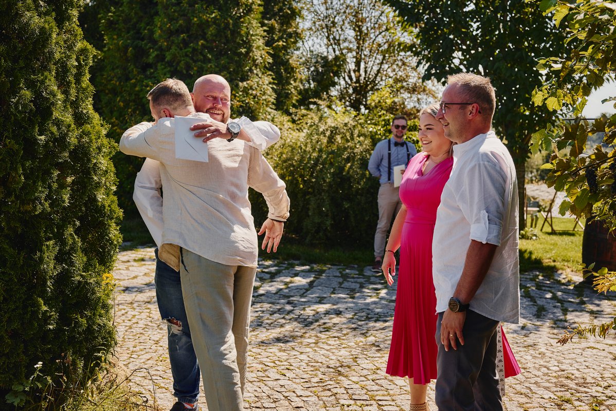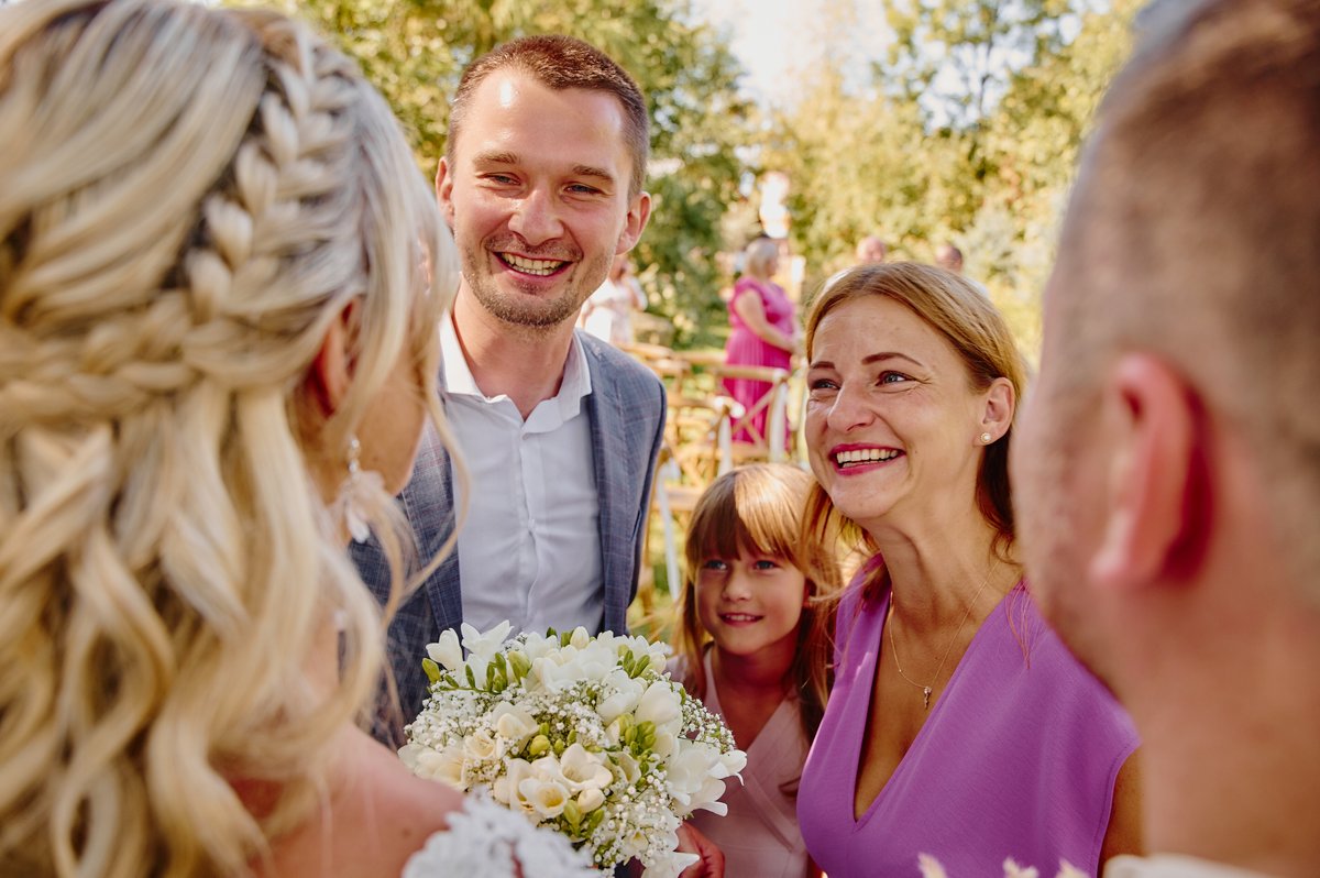 Dorota i Matej połączyli dwa światy. Polsko-czeskie wesele to zawsze gwarancja doskonałej energii i ciekawych akcentów. Goście z obu stron granicy szybko znaleźli wspólny język – język dobrej zabawy. Formuła „wesele na luzie” sprawdziła się tu idealnie. Zamiast sztywnego siedzenia przy stołach, mieliśmy swobodne rozmowy w ogrodzie, uśmiechy łapane w locie i spontaniczne toasty.